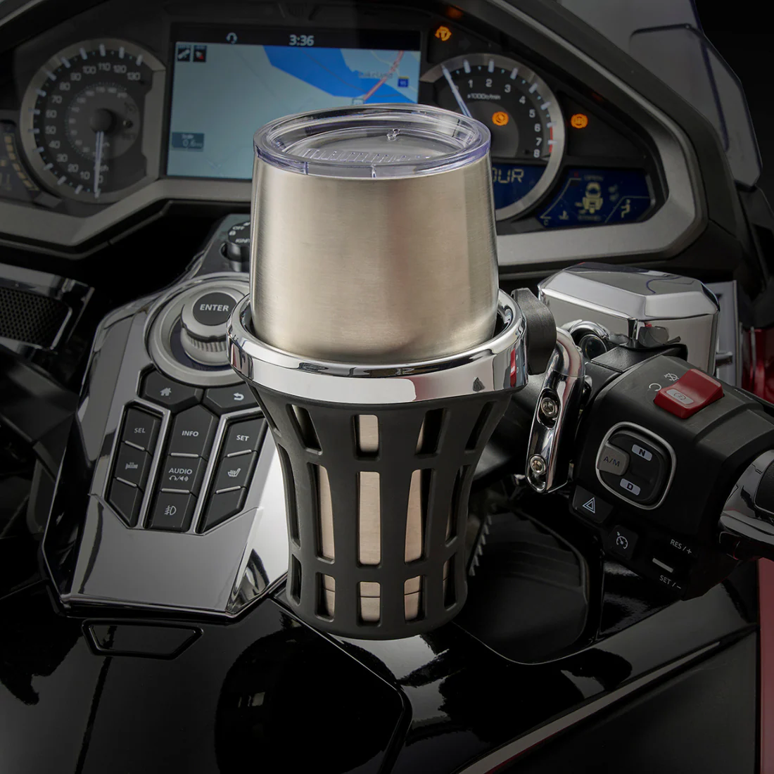 GOLDSTRIKE Drink Holder, Chrome, Mirror Mount, Black